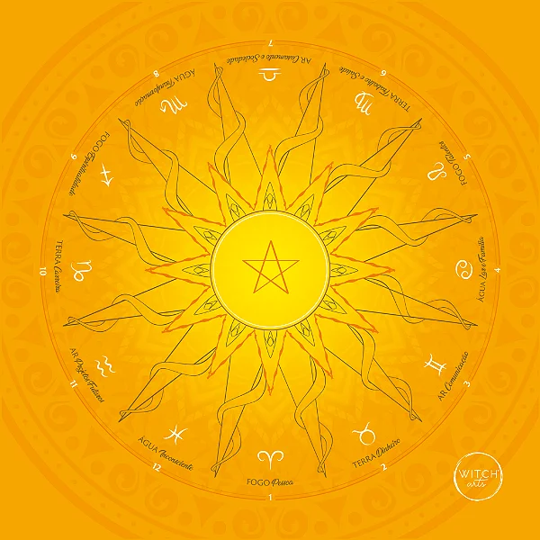 TOALHA DE OXFORD, 12 AREAS EM CIRCULO MAIS OS 4 ELEMETOS E SIGNOS