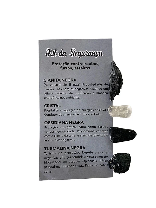 • Inclui as pedras: Cianita Negra, Cristal, Obsidiana Negra e Turmalina Negra.