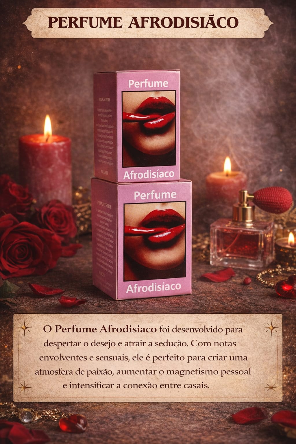 Os aromas afrodisíacos atuam no cérebro, despertando emoções e aumentando o desejo sexual. O perfume estimula as células receptoras do olfato, que enviam sinais ao cérebro profundo, despertando sensações de atração e sedução.
