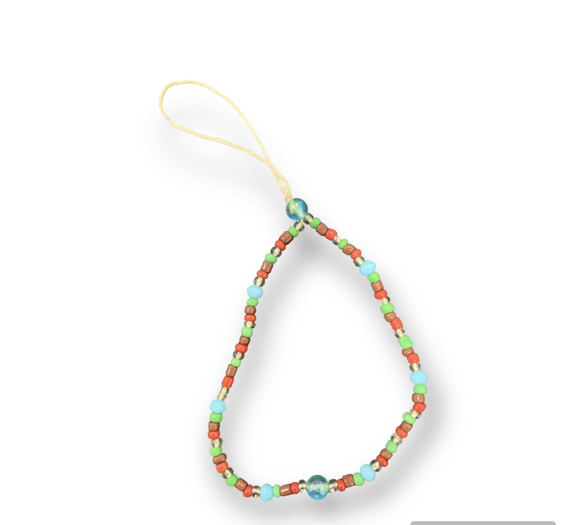 Strep phone, miçangas de cristal, fio encerado e cores representando os 4 elementos